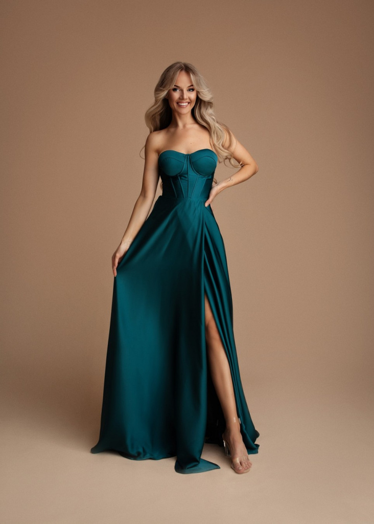 PETROLEJOVÉ SPOLOČENSKÉ ŠATY S KORZETOM EMMA