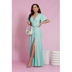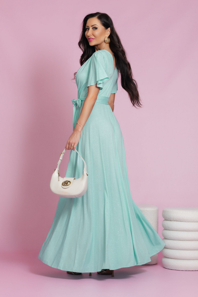 MENTOLOVÉ TRBLIETAVÉ SPOLOČENSKÉ ŠATY S VOLANOVÝM RUKÁVOM BELLA