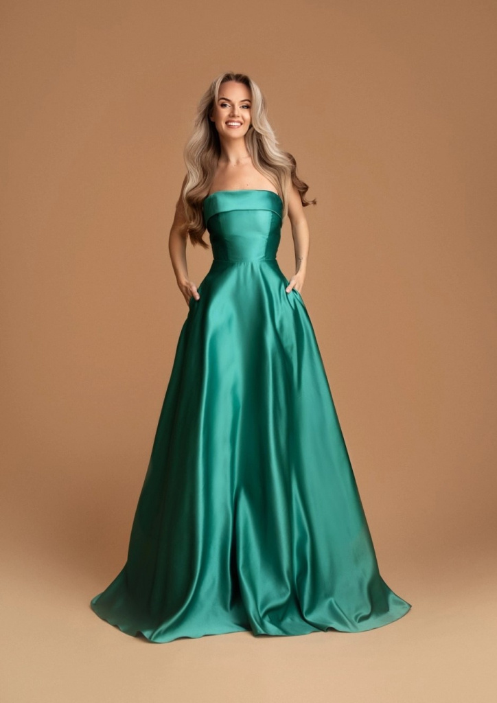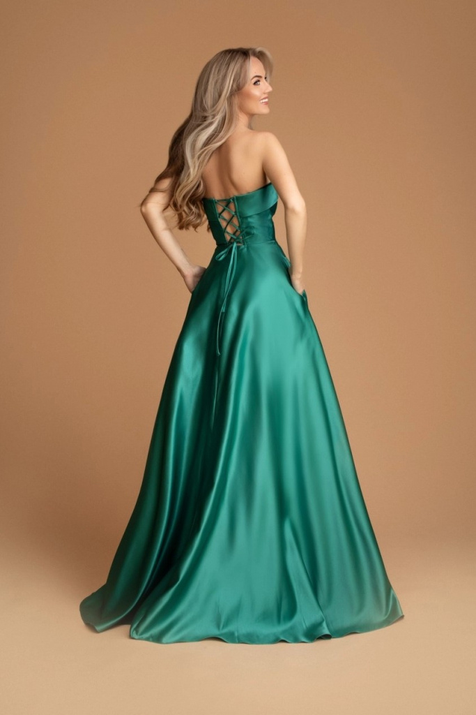 TYRKYSOVÉ DLHÉ SATÉNOVÉ SPOLOČENSKÉ ŠATY ALIZEE